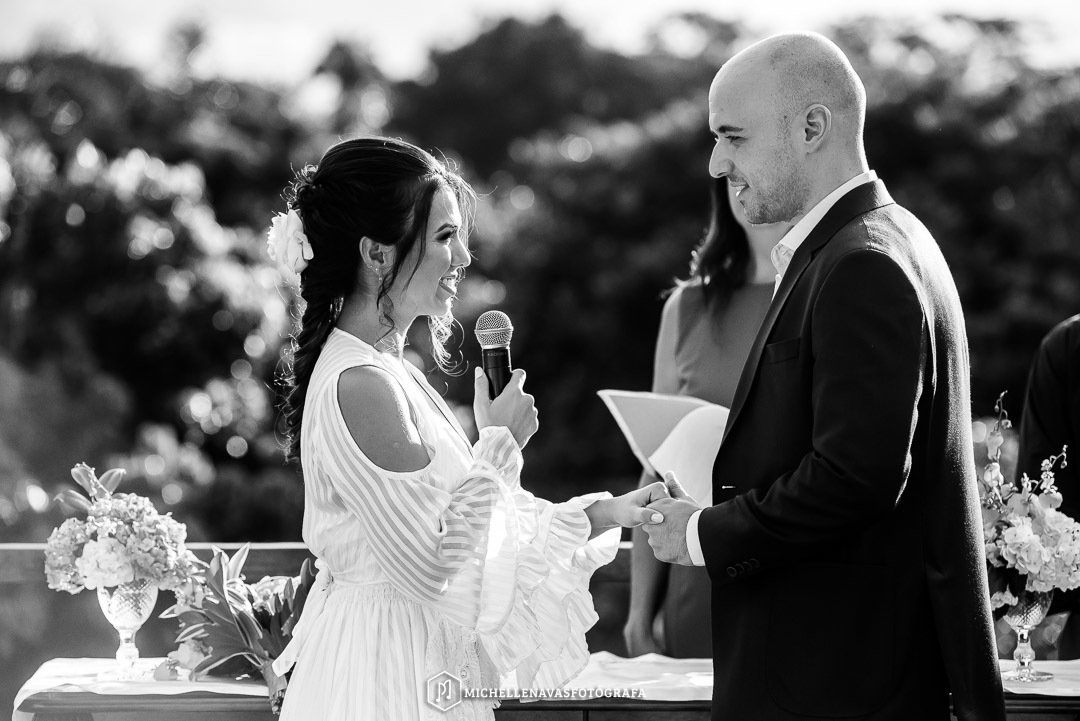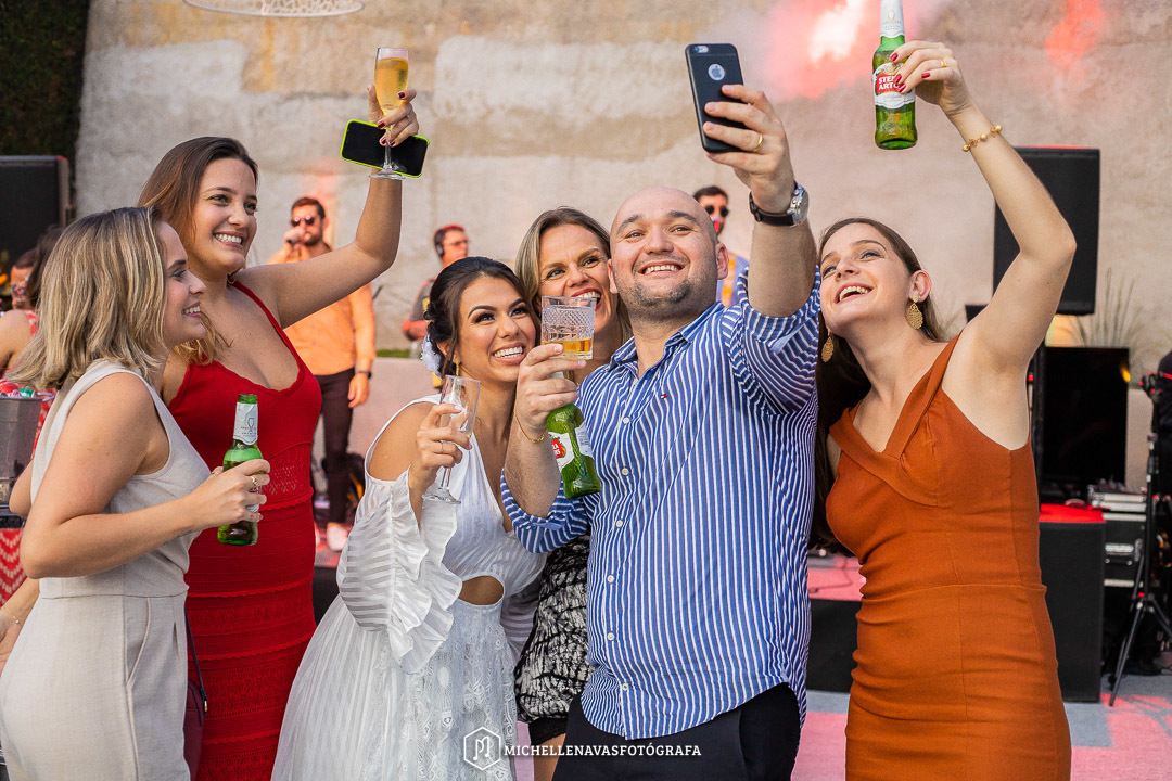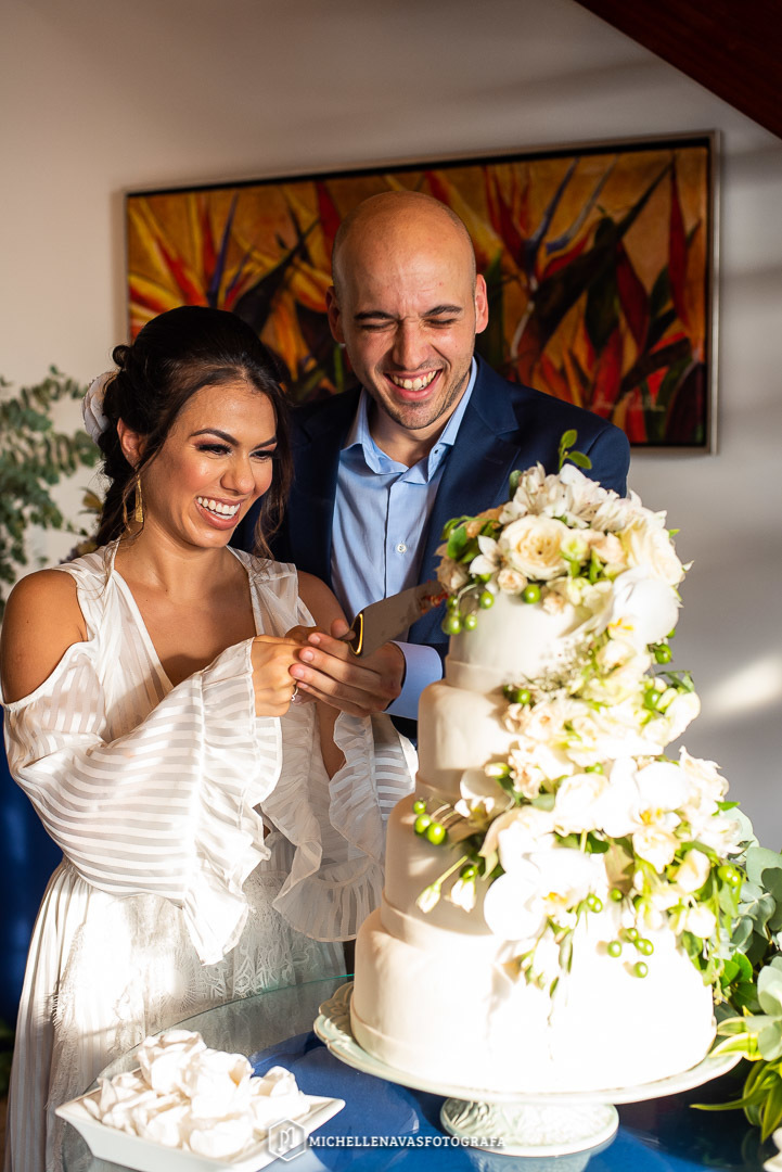 O casamento deles foi na casa da mãe da Maíra que por sinal reformou especialmente para esse grande dia! Estava tudo impecável, a casa toda iluminada, decorada, um ambiente familiar, aconchegante, todo alegre, dançaram até o final, alegria total.